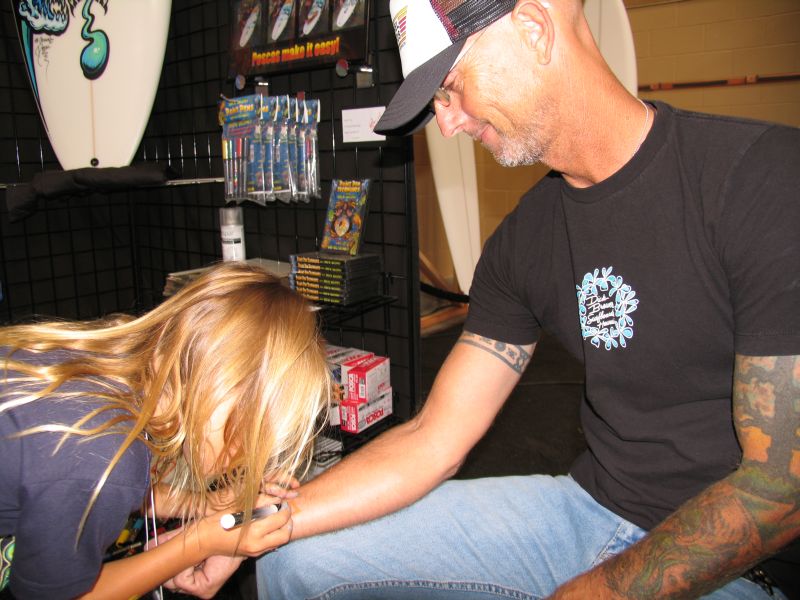 GET YOUR SURFBOARD PAINTED BY DREW ON SITE: Drew will paint surfboards for customers of the Expo who bought a new board on site. Pricing ranges from $50 to $250 depending on size of painting. To be put on the list (he can only paint a few) please call Maria at 949-678-8133 or email her at mariab at drewbrophy . com.